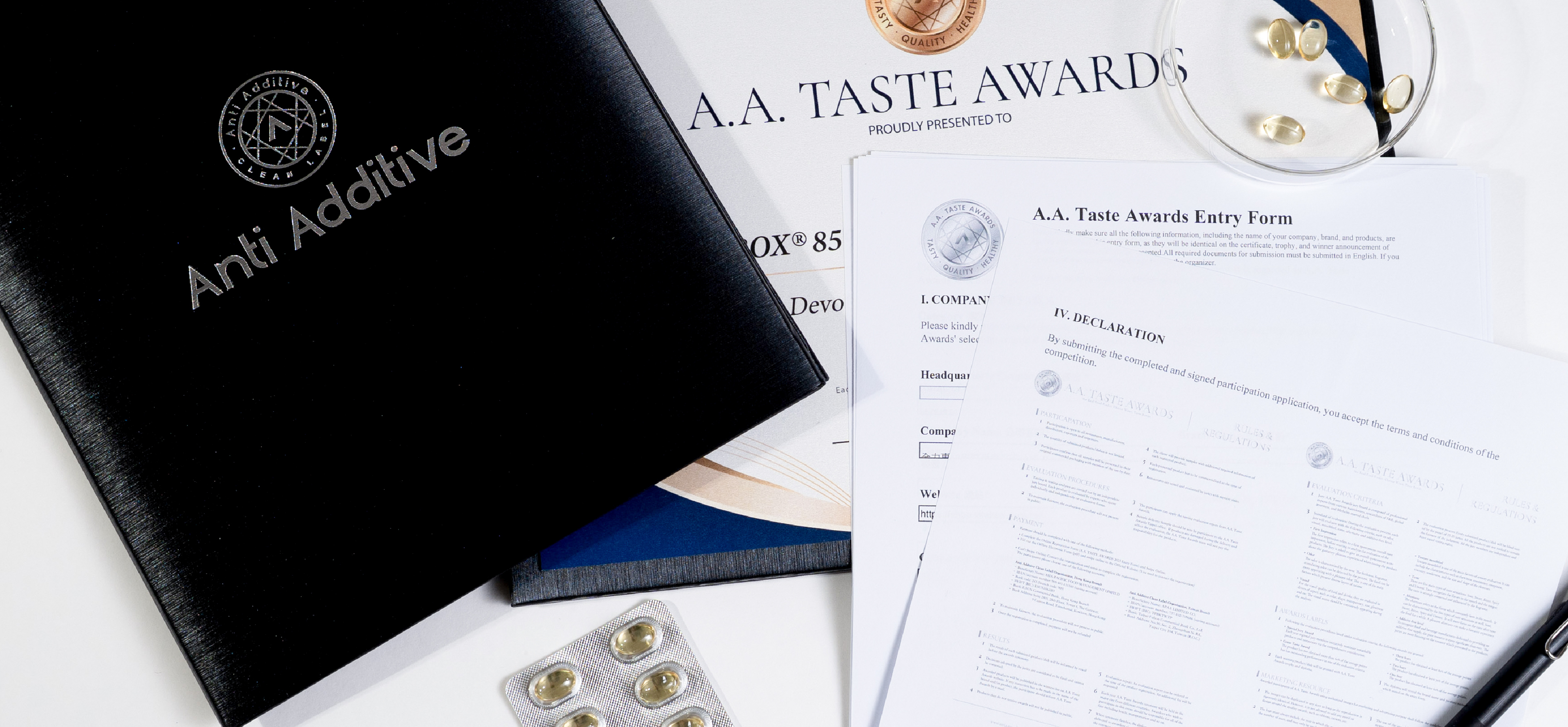 A.A. TASTE AWARDS 全球純粹品味評鑑是全球唯一以 CLEAN LABEL 精神為取向的綜合評鑑,代表著產品本身的純淨及美味。