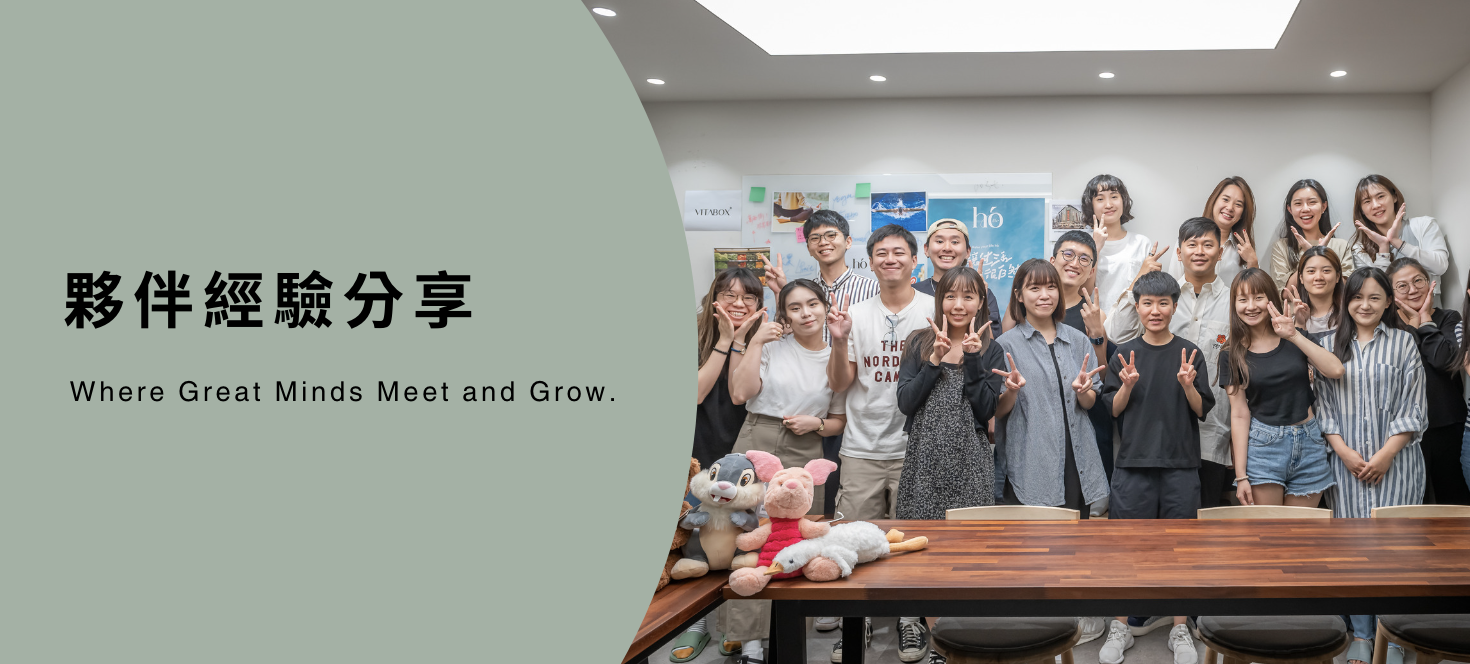 除了不斷成長,另外一定要提的還有夥伴!團隊的夥伴都會無私分享,不管是同部門還是不同部門,大家都願意把自己的擅長的事分享給其他夥伴,也因為所有人都有自己的強項,每個人分享的含金量都很高,讓大家可以一起變得更強,跟大家一起成長的感覺很棒!