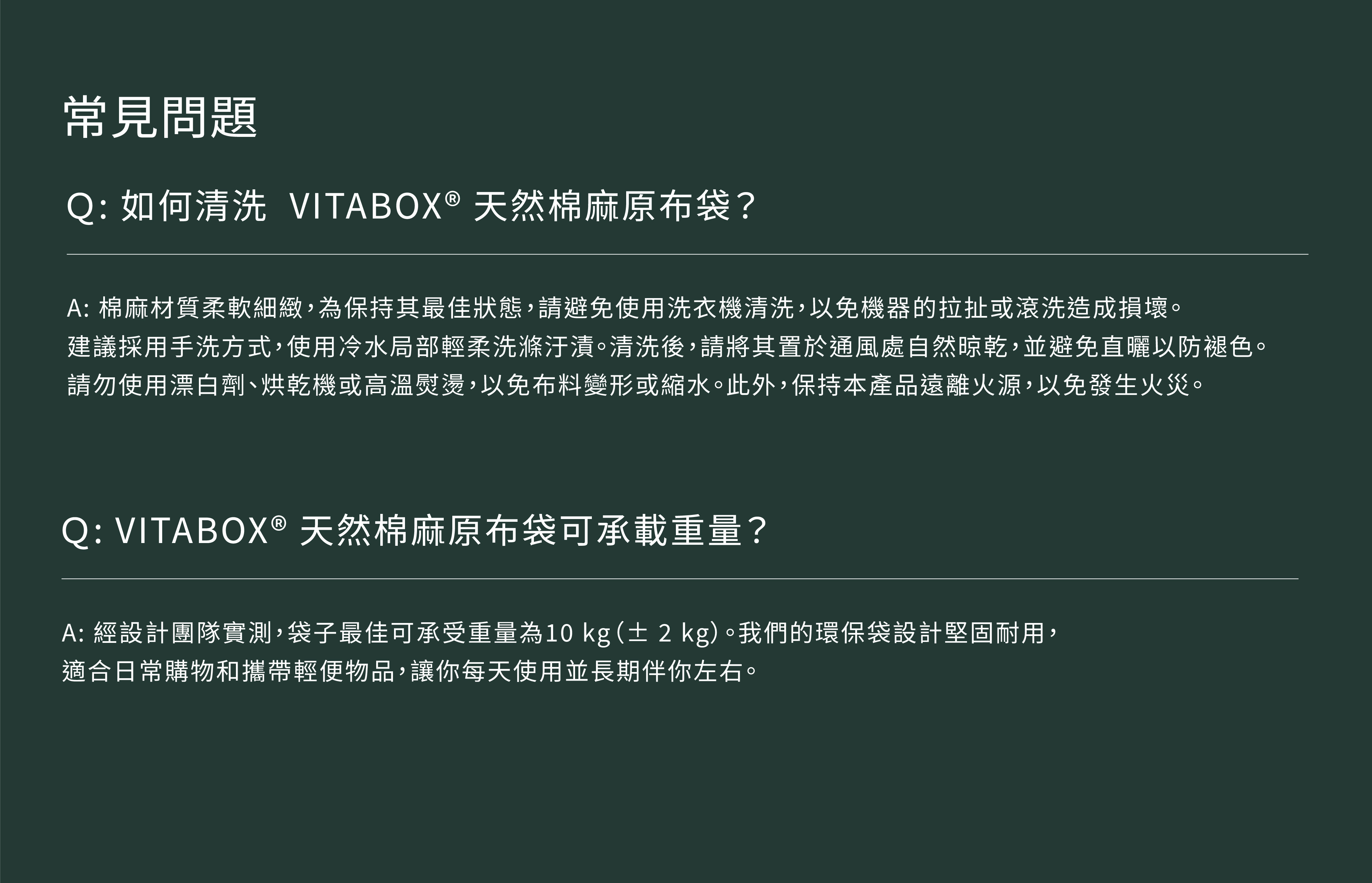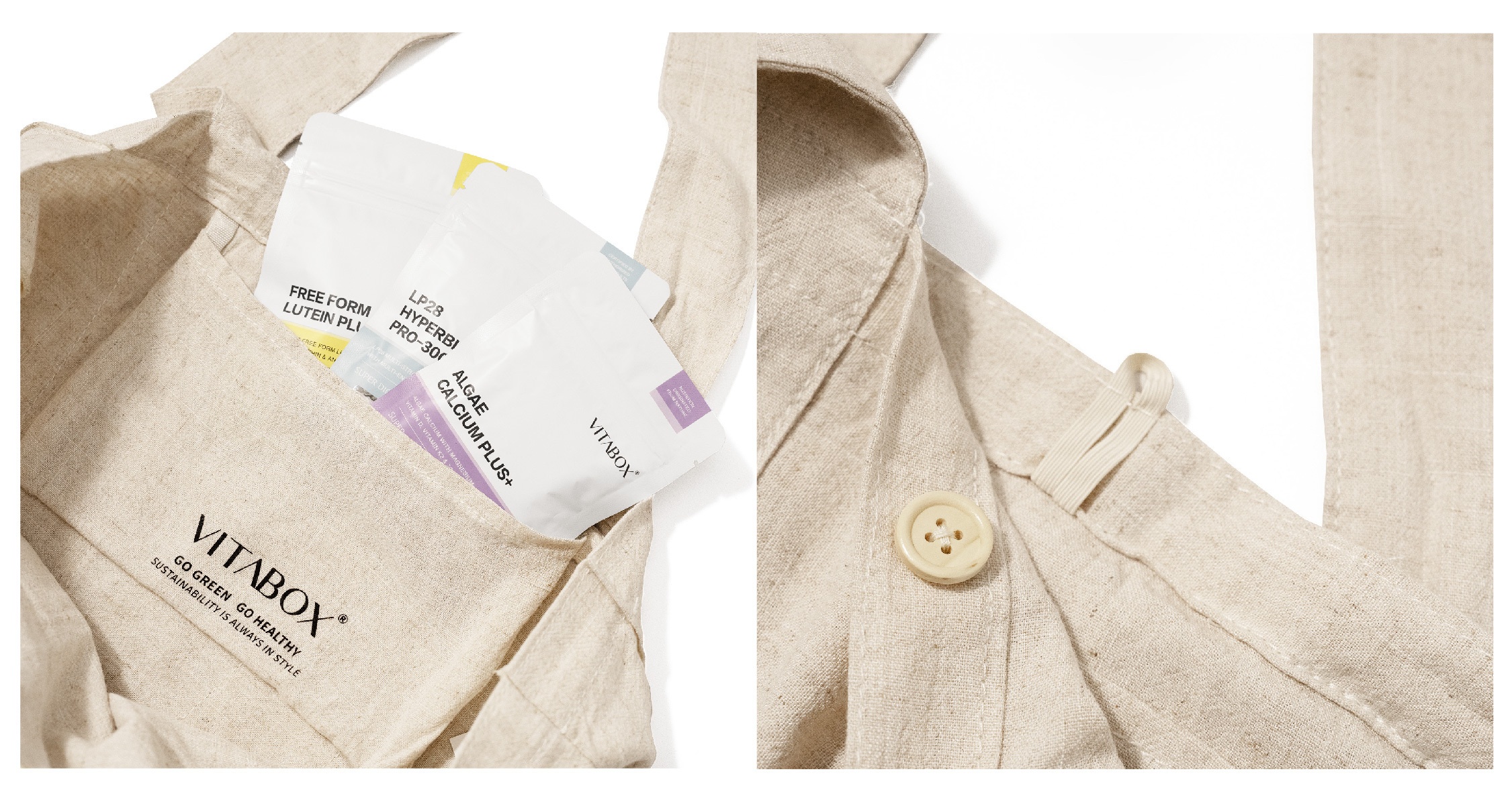 我們相信,對天然的追求不僅關乎健康,更是對地球的細心呵護。這份堅持激發了VITABOX® 設計團隊創造天然棉麻原布袋的靈感,採用天然棉麻,融合日常需求與永續實踐,為環境共織美好未來。