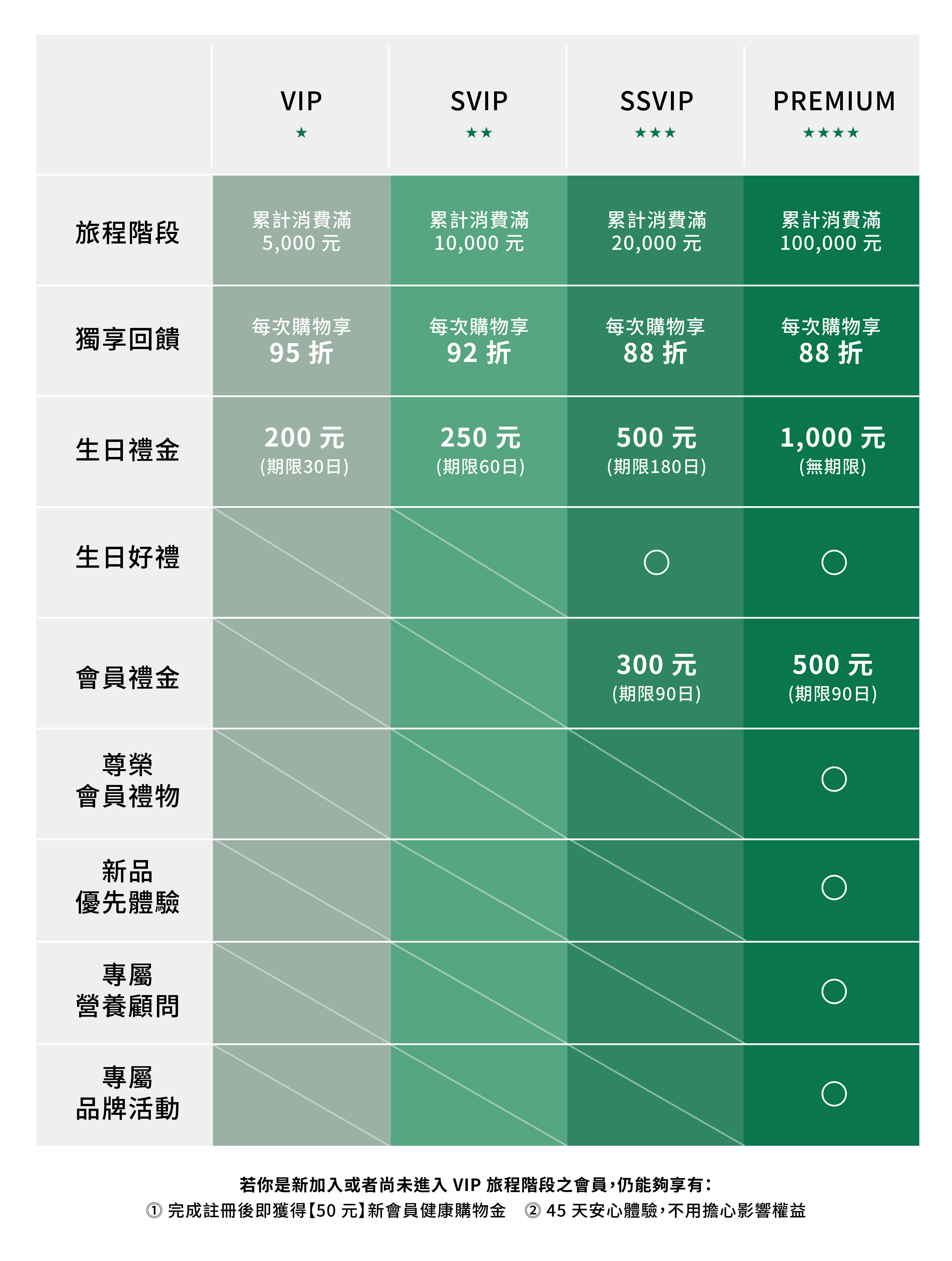 累積消費金額以單一會員帳號為主,不同會員帳號無法合併計算,亦無法轉讓。(累積消費金額之紀錄以本公司系統為計算依據)