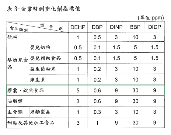 ▌ 食藥署已訂定企業監測塑化劑指標值