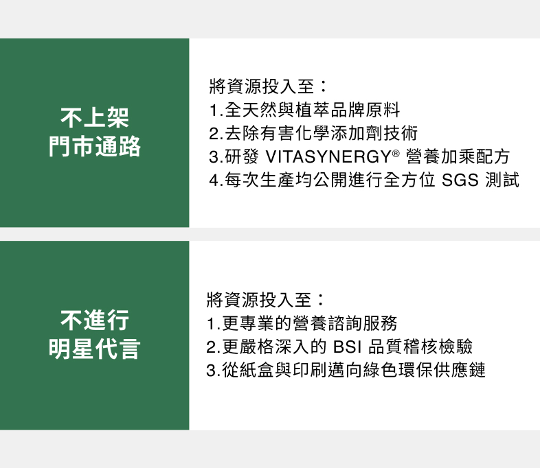 我們希望將高額的抽成代言費用,投入在更天然的產品配方與全面安全檢驗中,提供真正有幫助且安心的產品。