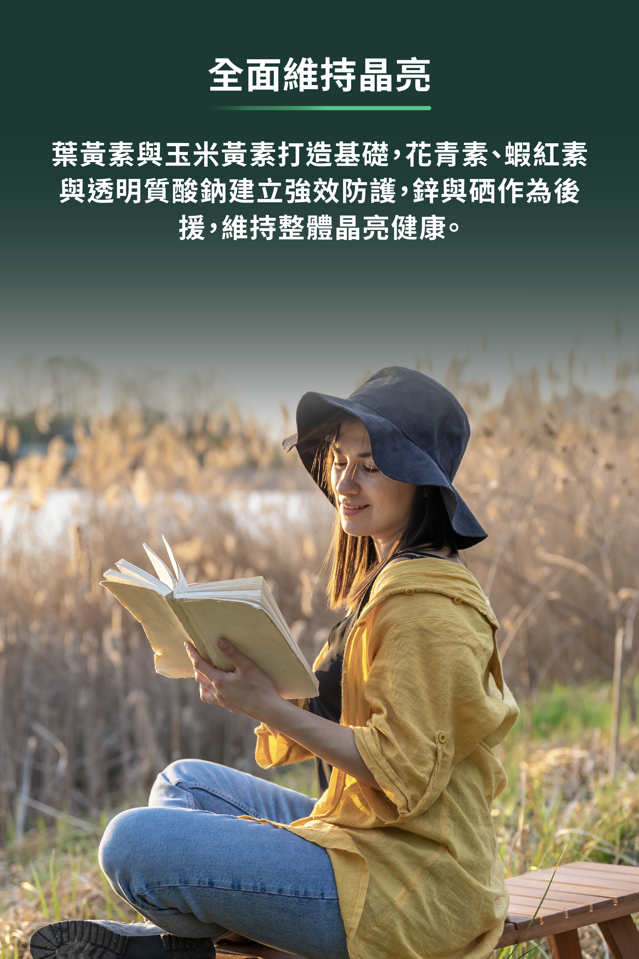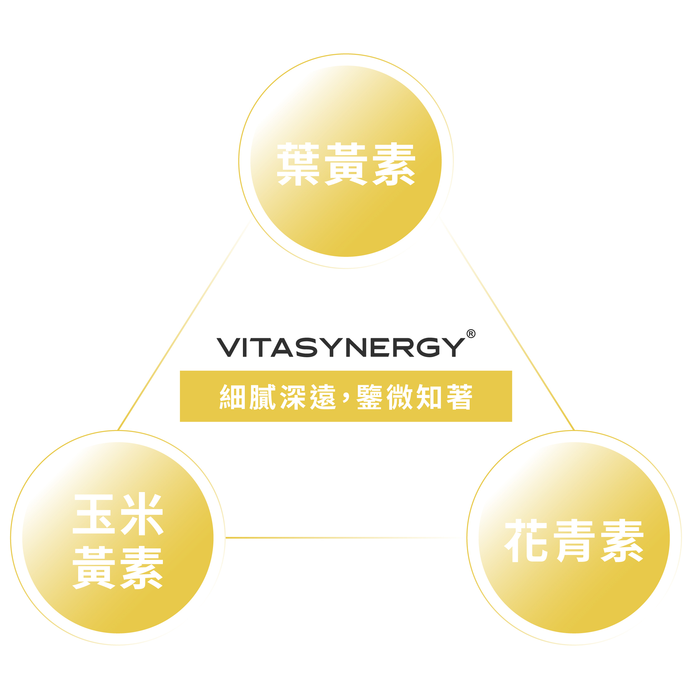 葉黃素與玉米黃素具有加乘作用,以 10:2 比例搭配能有效提升晶亮力,再與花青素聯手,加倍守護。