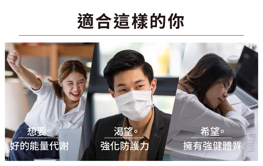 1 歲以上的全素食者、葷食者,包含青春期、生理期、備孕期、懷孕期、哺乳期、更年期女性,男女上班族及長輩族。